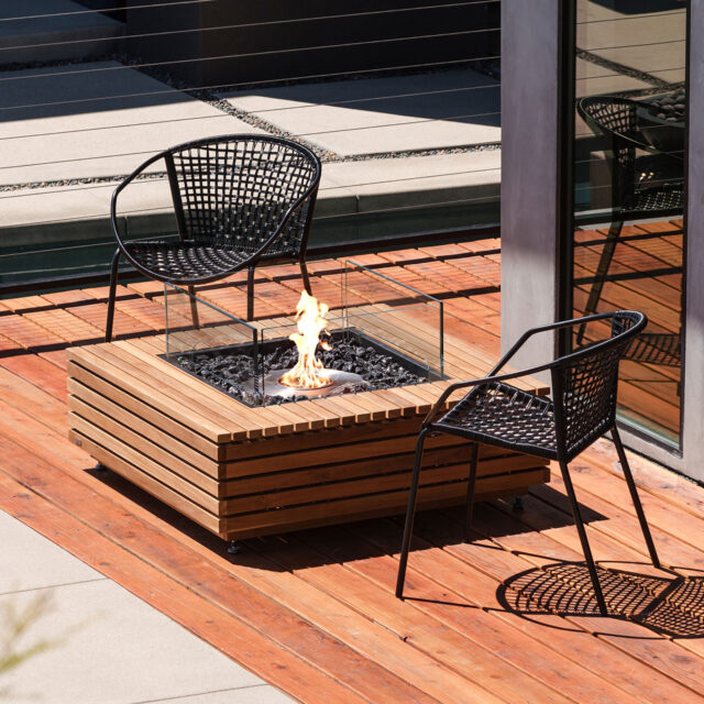 Base 40 (Teak) Fire Pit Table Your centre for relaxation and entertainment. Blending a coffee table and fire pit, Base offers the best of both worlds. Whether you're lounging on the patio or hosting an event, Base is sure to impress your guests. Its contemporary classic fire pit fits in seamlessly with any outdoor decor.