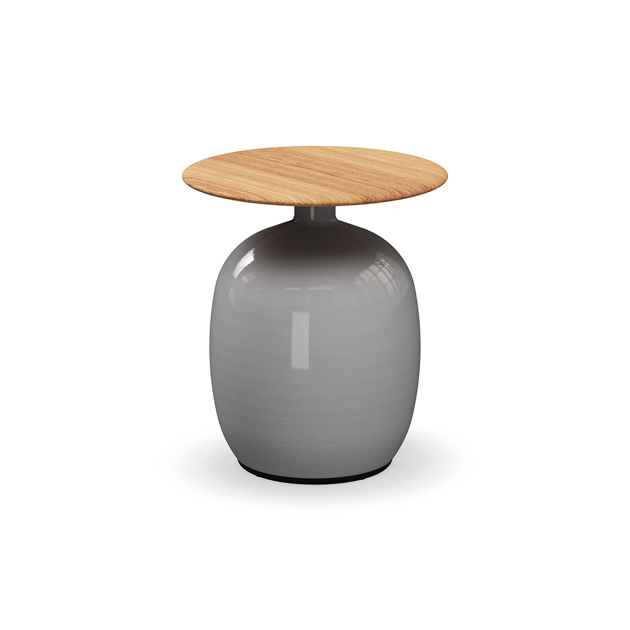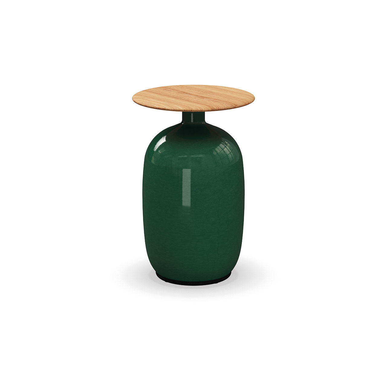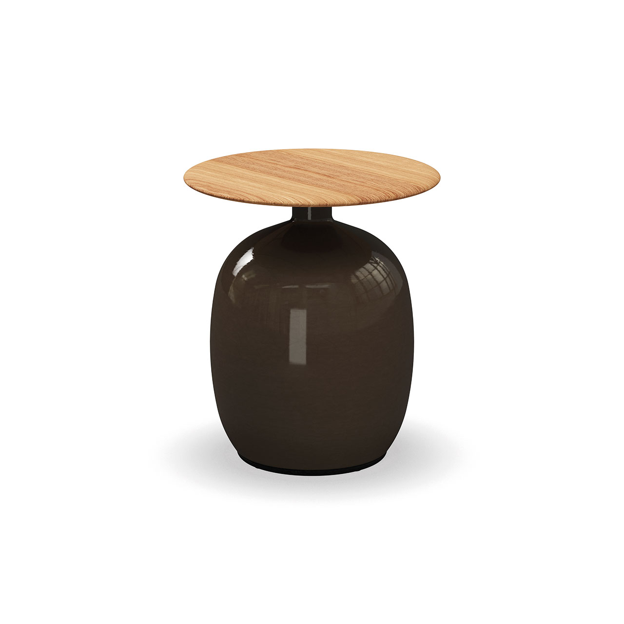 Notes: Glazed ceramic base. Natural finish teak table top.