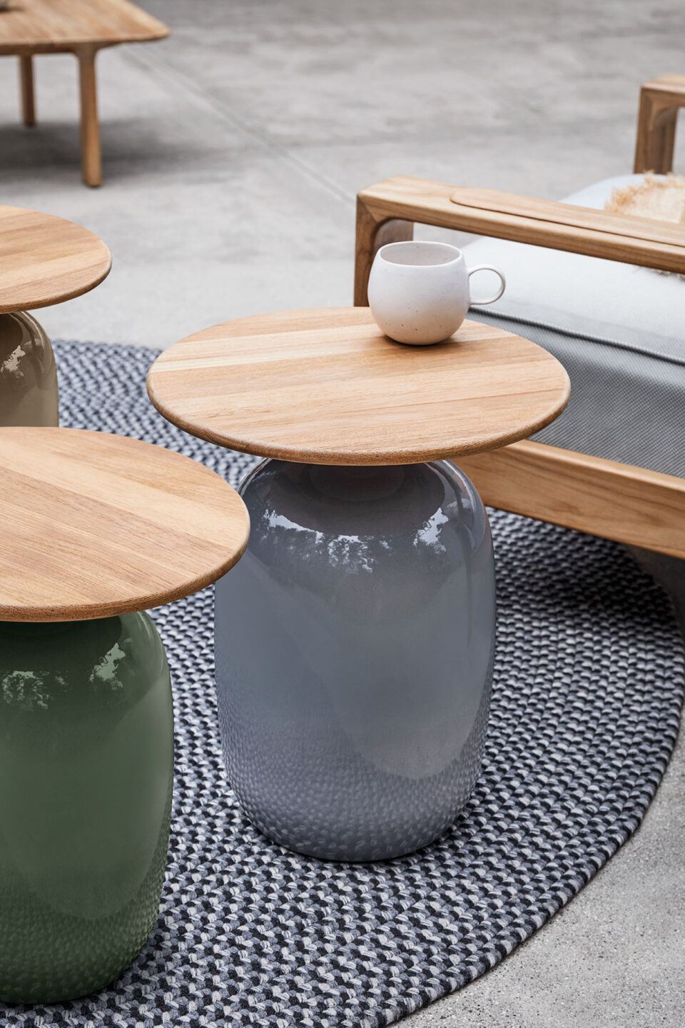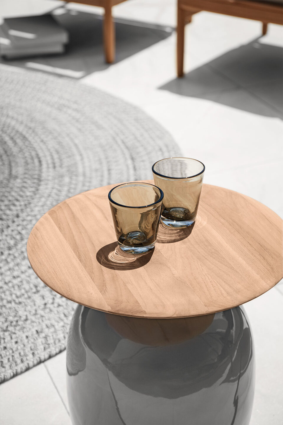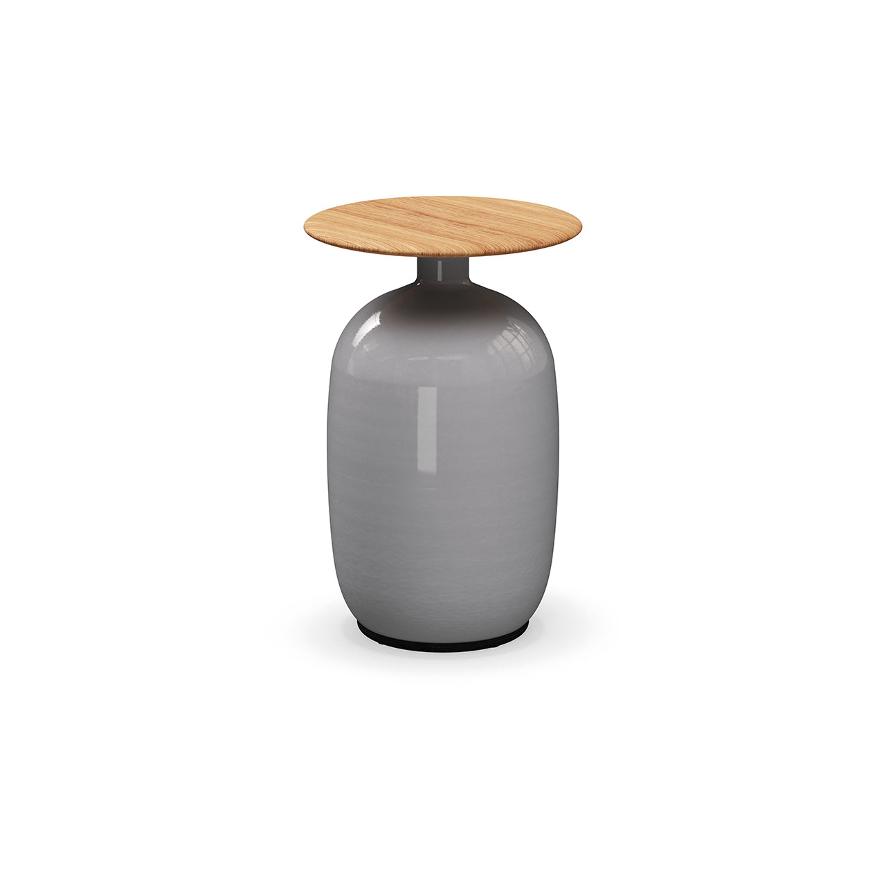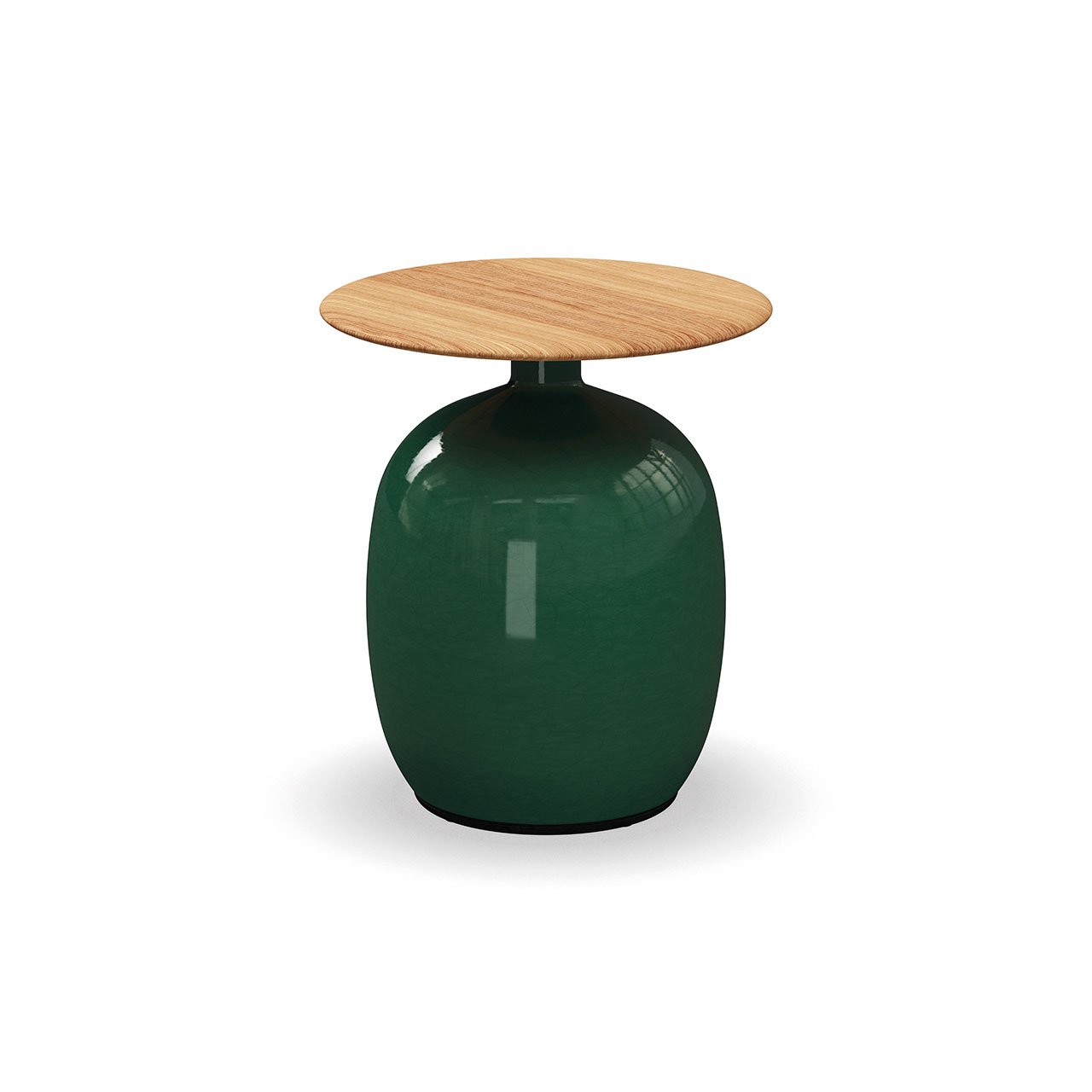 Notes: Glazed ceramic base. Natural finish teak table top.
