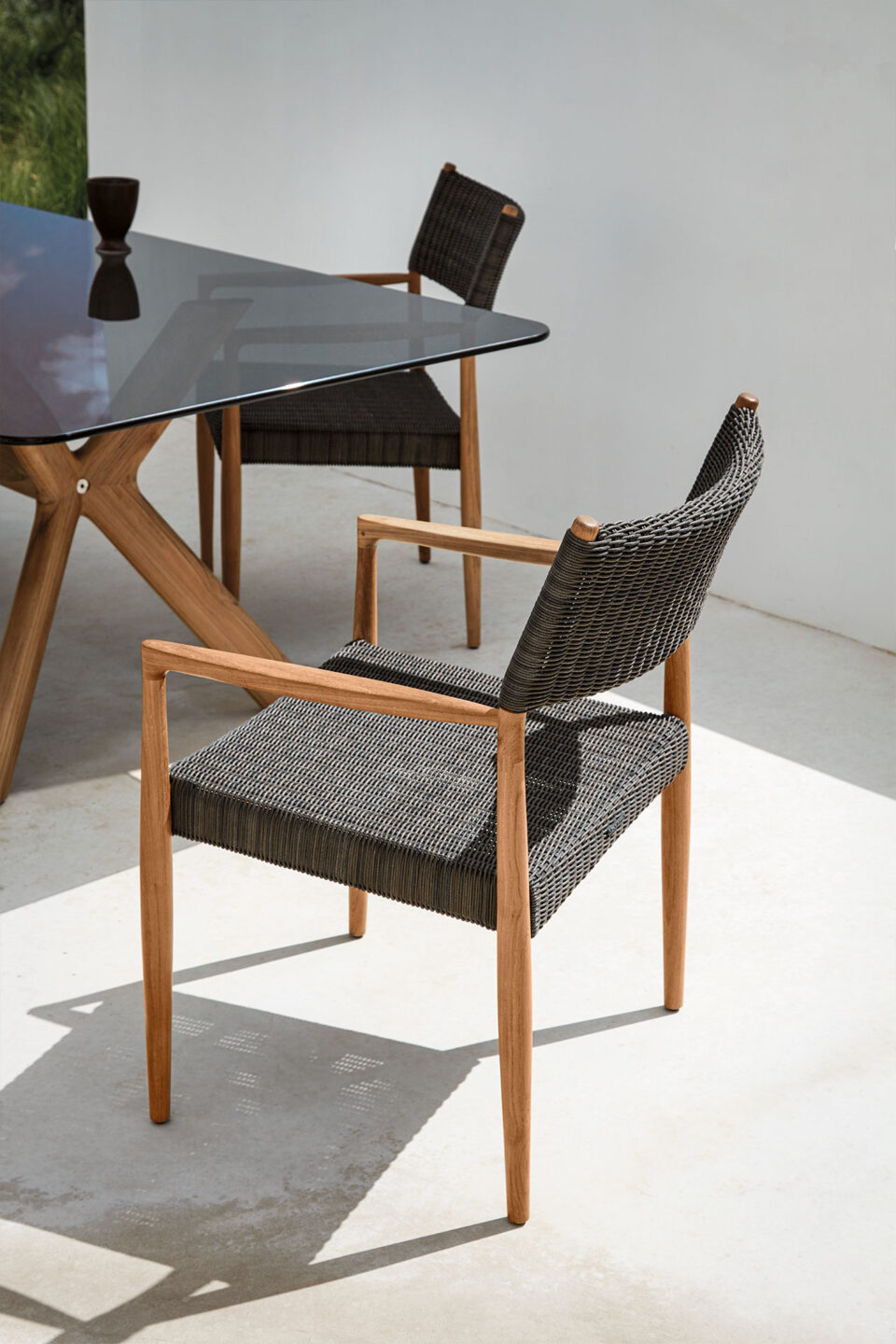 A simple and stylish dining solution, tundra combines sustainably grown plantation teak with durable synthetic fibres. all weather wicker is artfully hand woven about a skilfully crafted, scandinavian style frame; both materials partnering to produce a perfect table companion.
